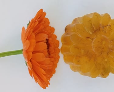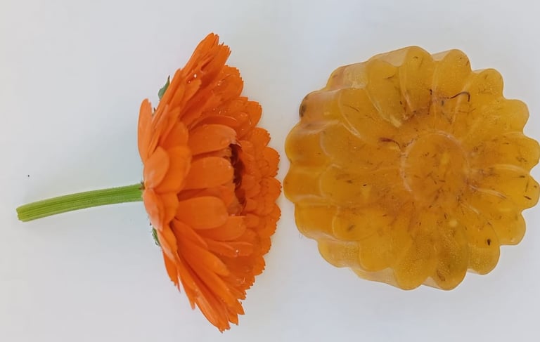 Experimente o toque suave da natureza com nosso sabonete artesanal de flor de calêndula, habilmente elaborado em um elegante formato floral. Esta barra botânica calmante proporciona uma limpeza suave e nutritiva, deixando sua pele macia, refrescada e deliciosamente perfumada. Apresentado em um vibrante tom amarelo-dourado, cada sabonete mede aproximadamente 90 g, tornando-o perfeito para uso diário ou como um presente atencioso. Delicie-se com os benefícios calmantes da calêndula e eleve sua rotina de autocuidado.