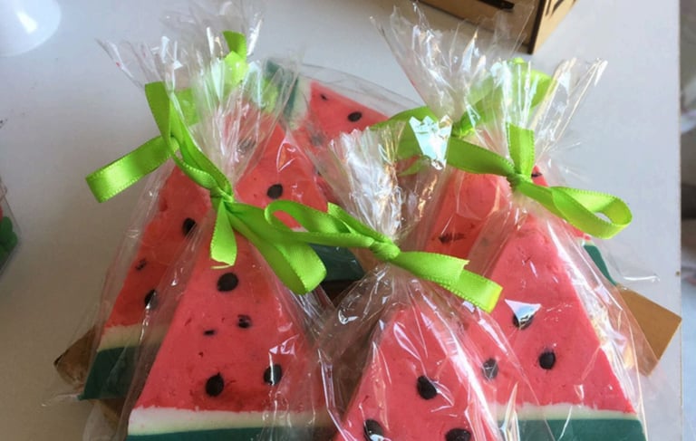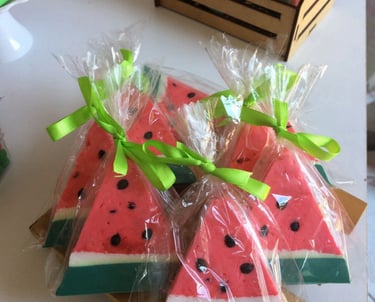 Delicie-se com o charme dos nossos sabonetes em formato de fatia de melancia — cada um feito à mão para se assemelhar a uma fatia suculenta de melancia, com tons realistas de vermelho vibrante, verde fresco e branco suave. Garantindo uma apresentação encantadora, perfeita para presentear. Aproveite o design lúdico e refrescante como um toque alegre no seu banheiro ou surpreenda alguém querido com um presente único e atencioso. Esses sabonetes são ideais para eventos com tema de verão, lembrancinhas de festa ou simplesmente para adicionar um toque de diversão à sua rotina diária.100g por unidade.