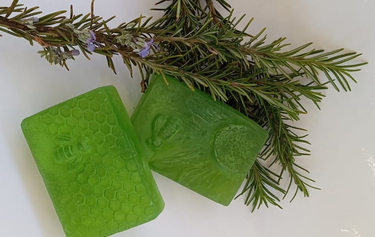 Experimente o toque luxuoso do nosso sabonete artesanal de ervas verdes, lindamente elaborado com um charmoso favo de mel e abelhas. Infundido com alecrim puro para uma fragrância refrescante e revigorante, este sabonete limpa suavemente e nutre profundamente a sua pele. Cada barra é cuidadosamente moldada e colorida em um verde vibrante, tornando-se um complemento de destaque para a sua rotina de banho. Perfeito para uso diário e adequado para todos os tipos de pele. Tamanho: 100g por unidade.